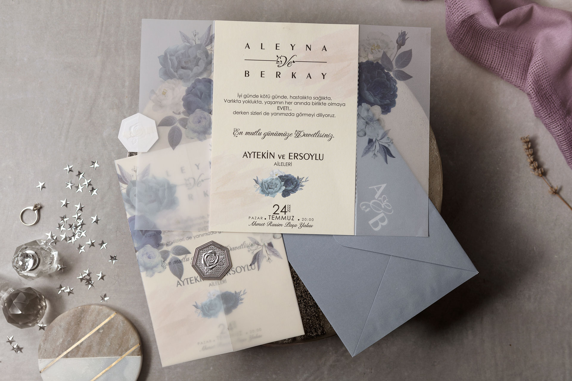 💕 Davetiye aksesuarları ve zarf fiyata dahildir.